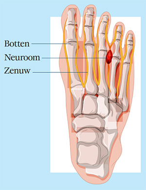 - Een doorgezakte voorvoet waardoor de druk op de zenuwbaan toeneemt.